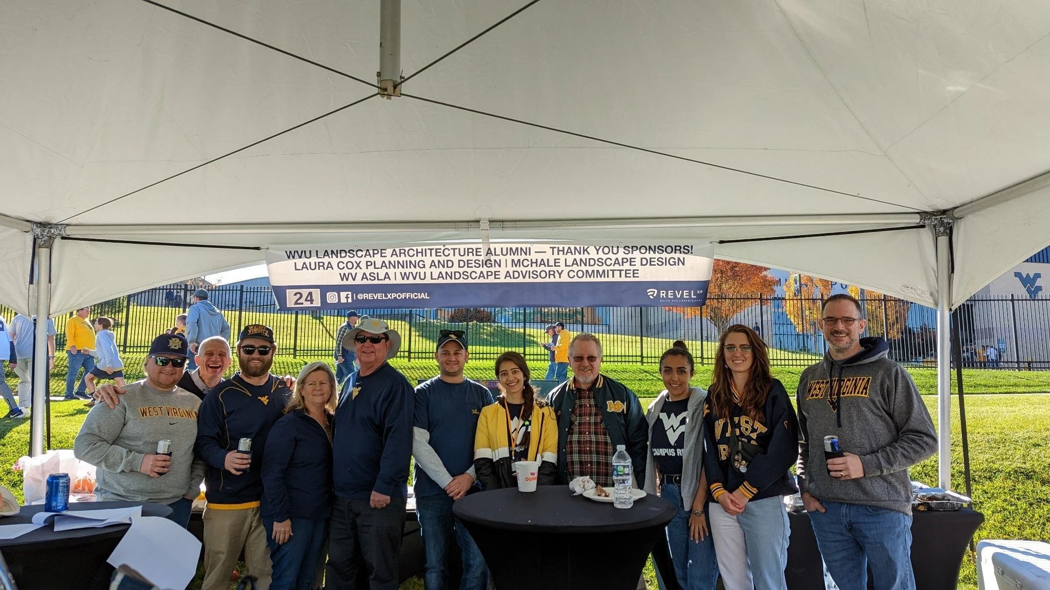 WVASLA Members took part in a WVU Landscape Architecture Alumni tailgate during Homecoming Week of 2022. Laura Cox Planning and Design was generous enough to sponsor the tailgate event.